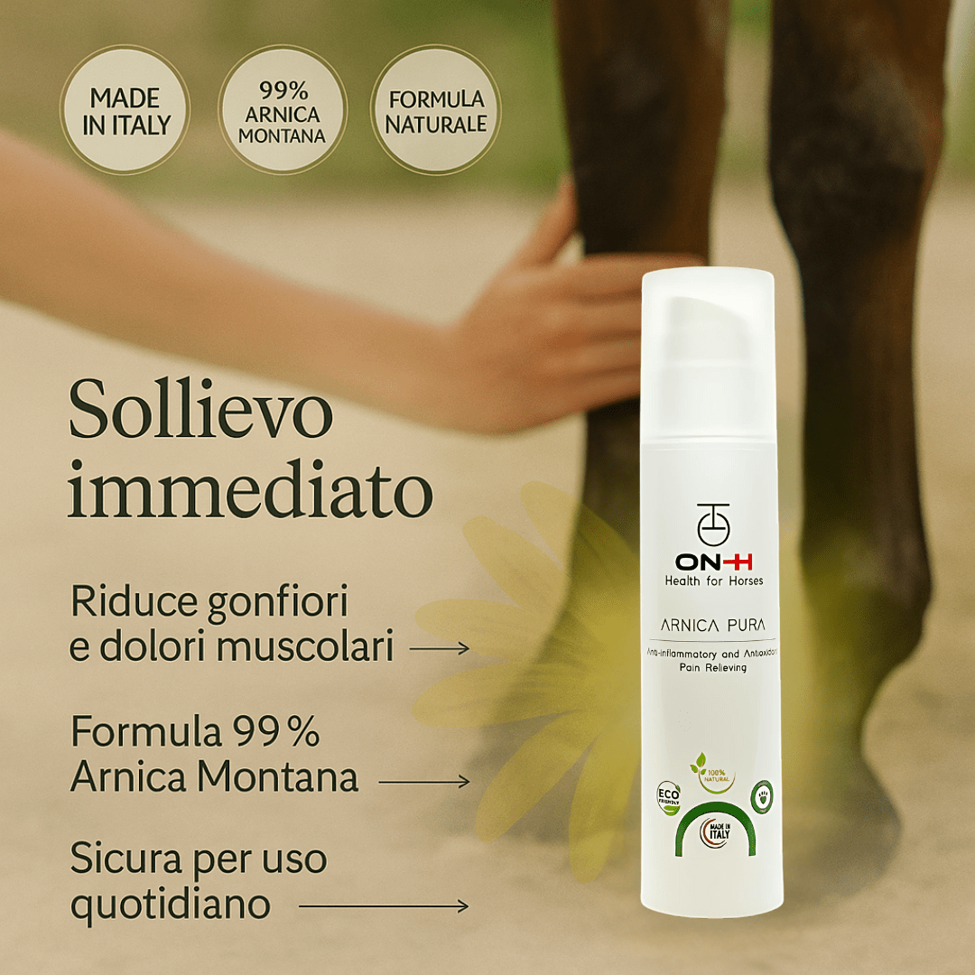 Arnica Pura ist ein 100 % natürliches und in Italien hergestelltes Gel speziell für Pferde, basierend auf Arnica Montana.