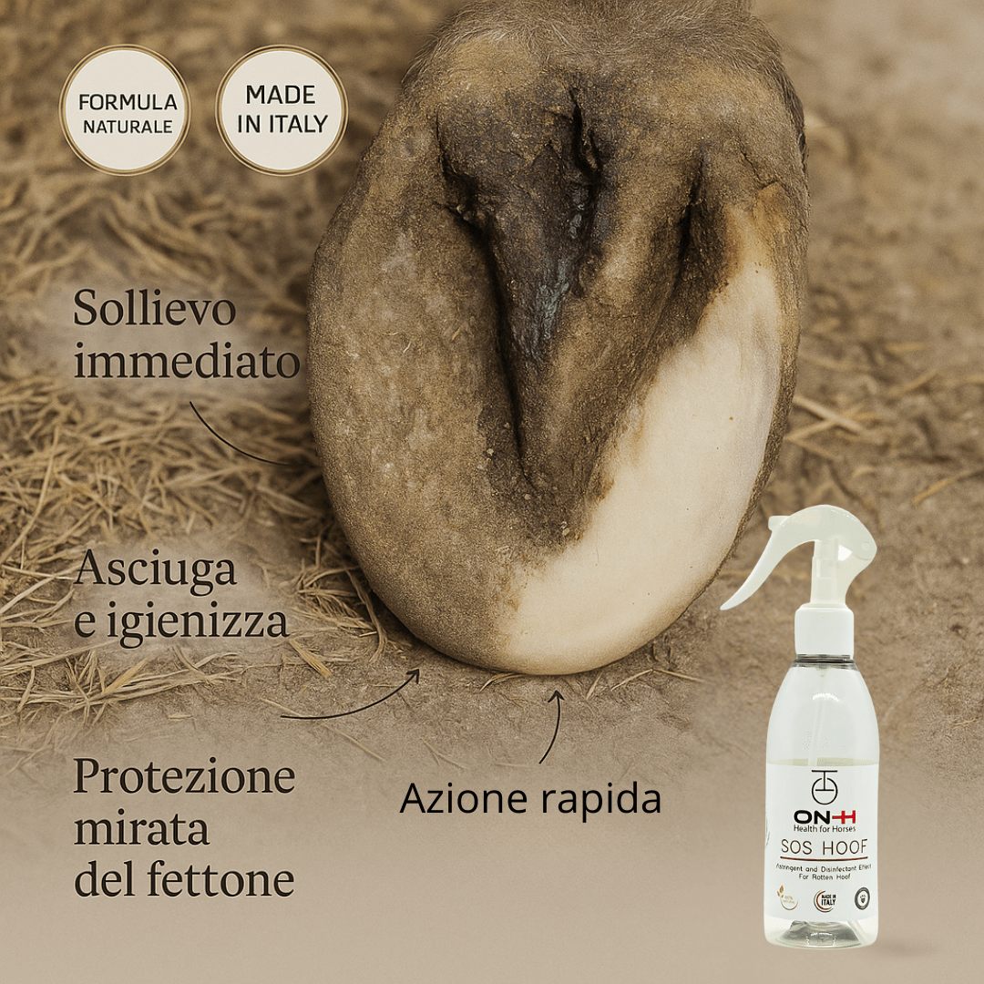 naturale e Made in Italy specifico per zoccoli con problemi di eccessiva umidità e stati di marcimento avanzati.